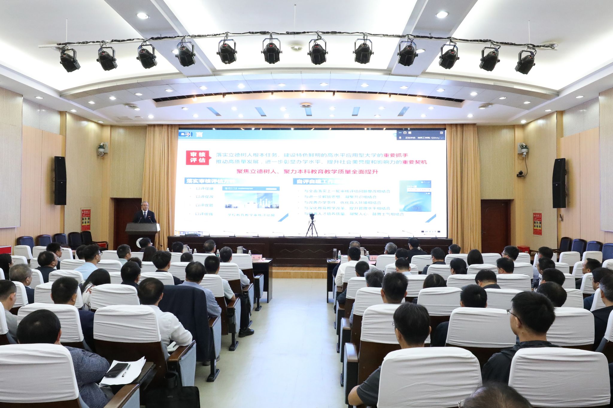 全体校领导,各部门、单位主要负责人,教务处、教育质量管理处工作人员,教师代表和学生代表线下参加会议。