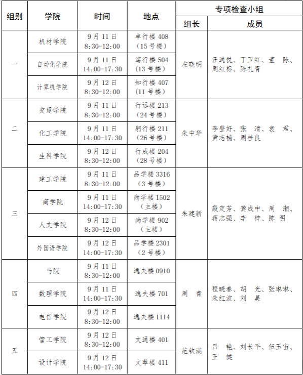 注:检查工作由各组组长统筹安排;秘书由各教学单位教学秘书或教务员担任,秘书做好检查会场准备,根据各组专家人数准备检查材料,包括检查通知、相关表格、笔、空白A4纸、检查拍照等。