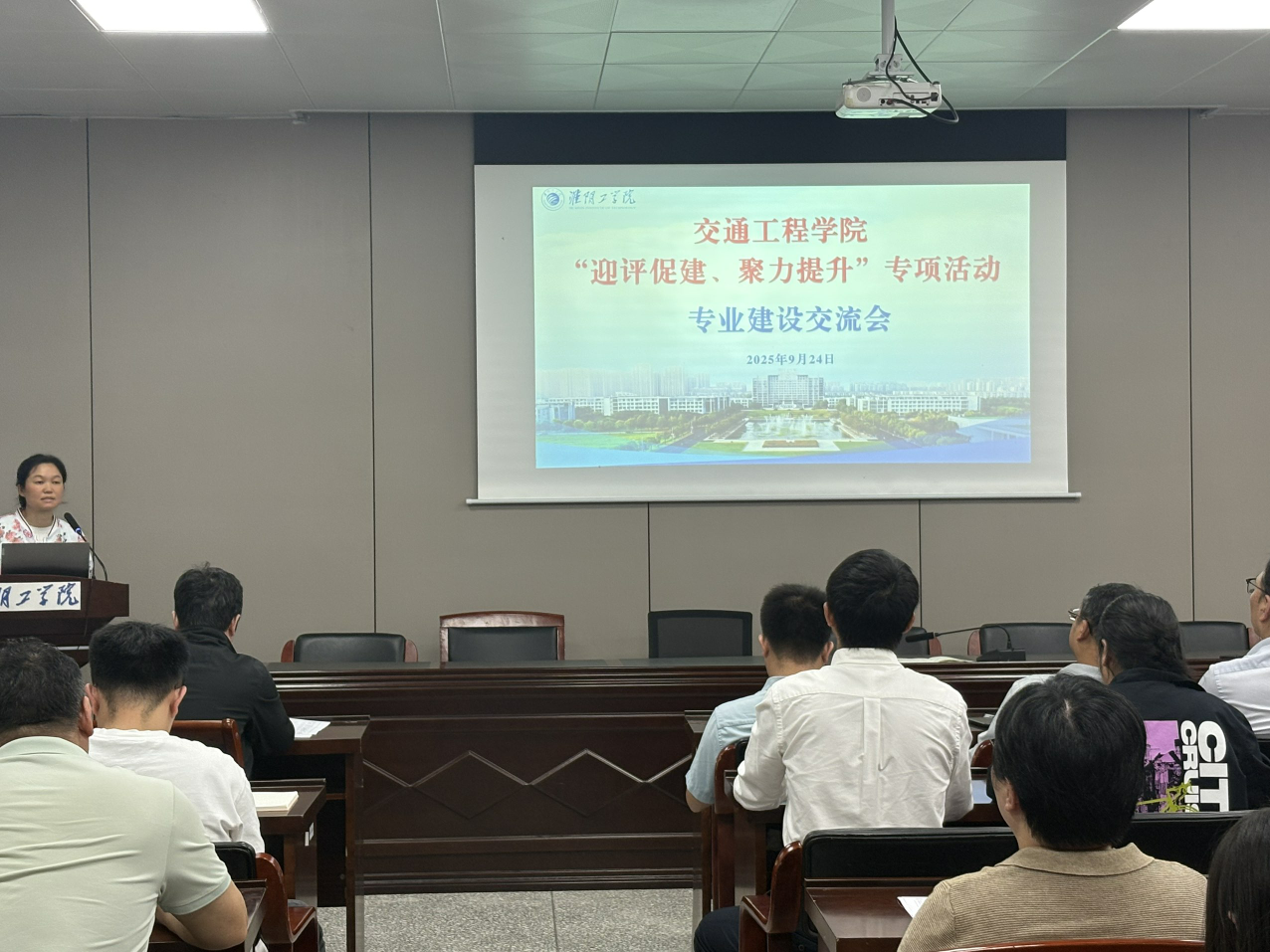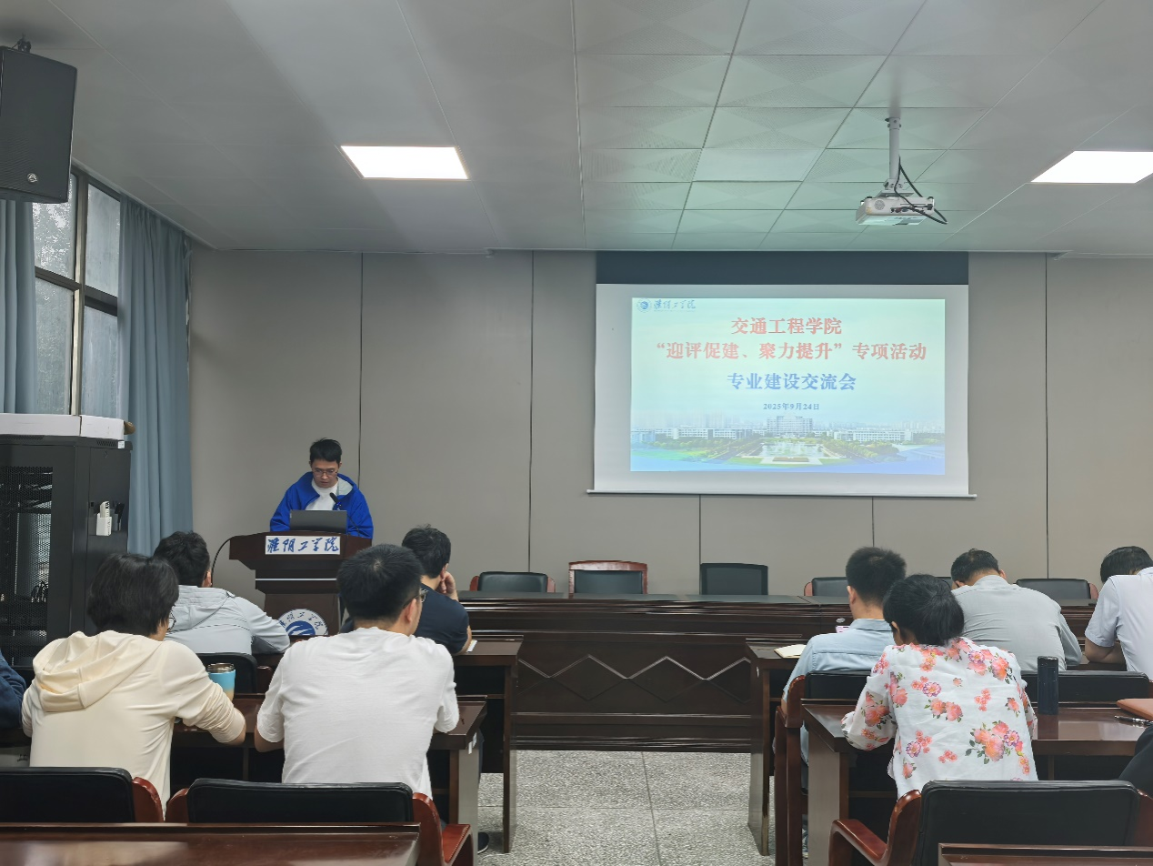 为深入贯彻落实学校关于开展“迎评促建、聚力提升”专项活动的部署要求,全面提升学院教育教学质量和育人实效,2025年9月24日下午,交通工程学院在学院会议室组织召开“迎评促建、聚力提升”专项活动之专业建设交流会。会议由学院副院长周桂良主持,全体教师参会。