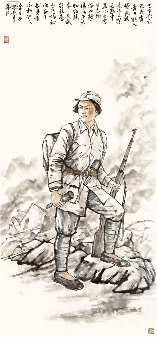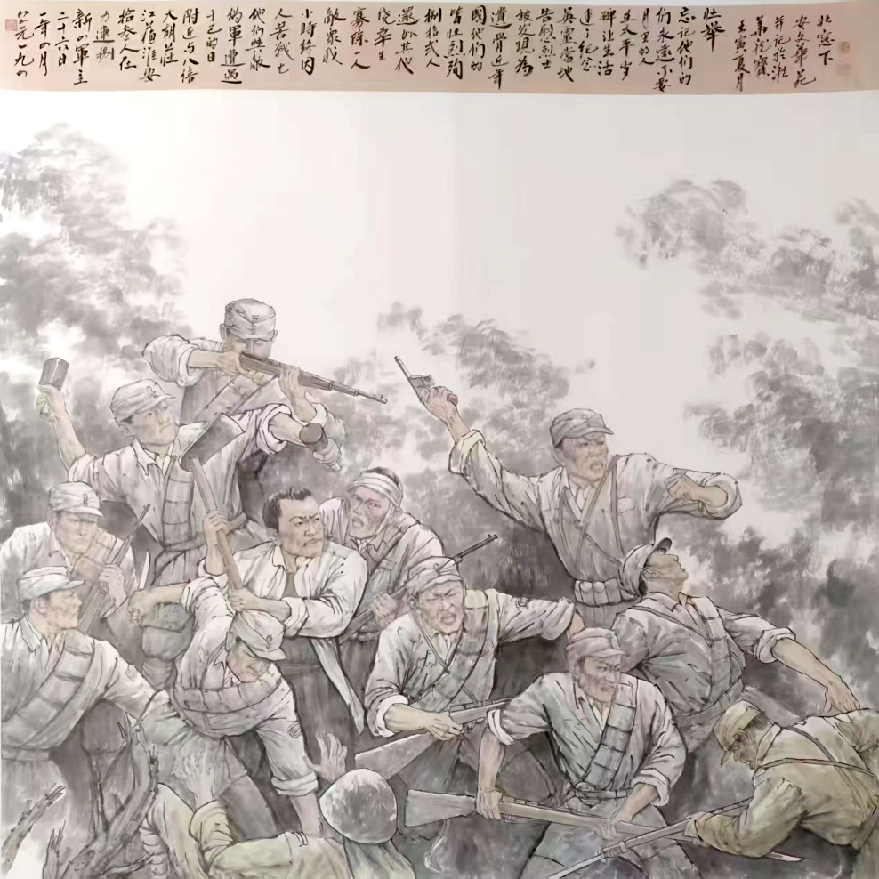八十年岁月奔流,洗不去烽火记忆;八十年山河无恙,更需以赤诚铭记。在纪念抗日战争胜利80周年的特殊时刻,淮阴工学院设计艺术学院教师华予与淮安市美术家协会主席华龙宝以抗战为主题共同创作了七件抗战主题美术作品,分别是《松山战役抗日小英雄》、《大胡庄战斗》、《地道地雷显神威》、《张纯如——寻证1937南京》、《谢罪者东史郎》、《新四军女战士》、《水墨中的跨越——陈纳德与抗战记忆》等。